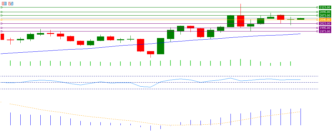 If the pivot point of 2045 is broken for gold, there is a possibility that it will target the support levels 2023, 1995, and 1973. But if it exceeds the pivot point, it is likely to target the resistance levels 2073, 2095, and 2123.
