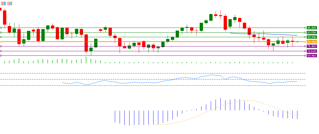 If the pivot point of 78.10 for crude oil is broken, there is a possibility that it will target the support levels of 75.45, 72.61 and 69.96. If it exceeds the pivot point, it is likely to target the resistance levels 80.94, 83.59, and 86.43.