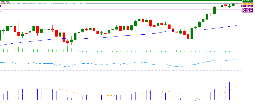 If the pivot point of 37,827 for the Dow is broken, there is a possibility that it will target the support levels 37,521, 36,997 and 36,691. If it exceeds the pivot point, it is likely to target the resistance levels 38,351, 38,657, and 39,181.