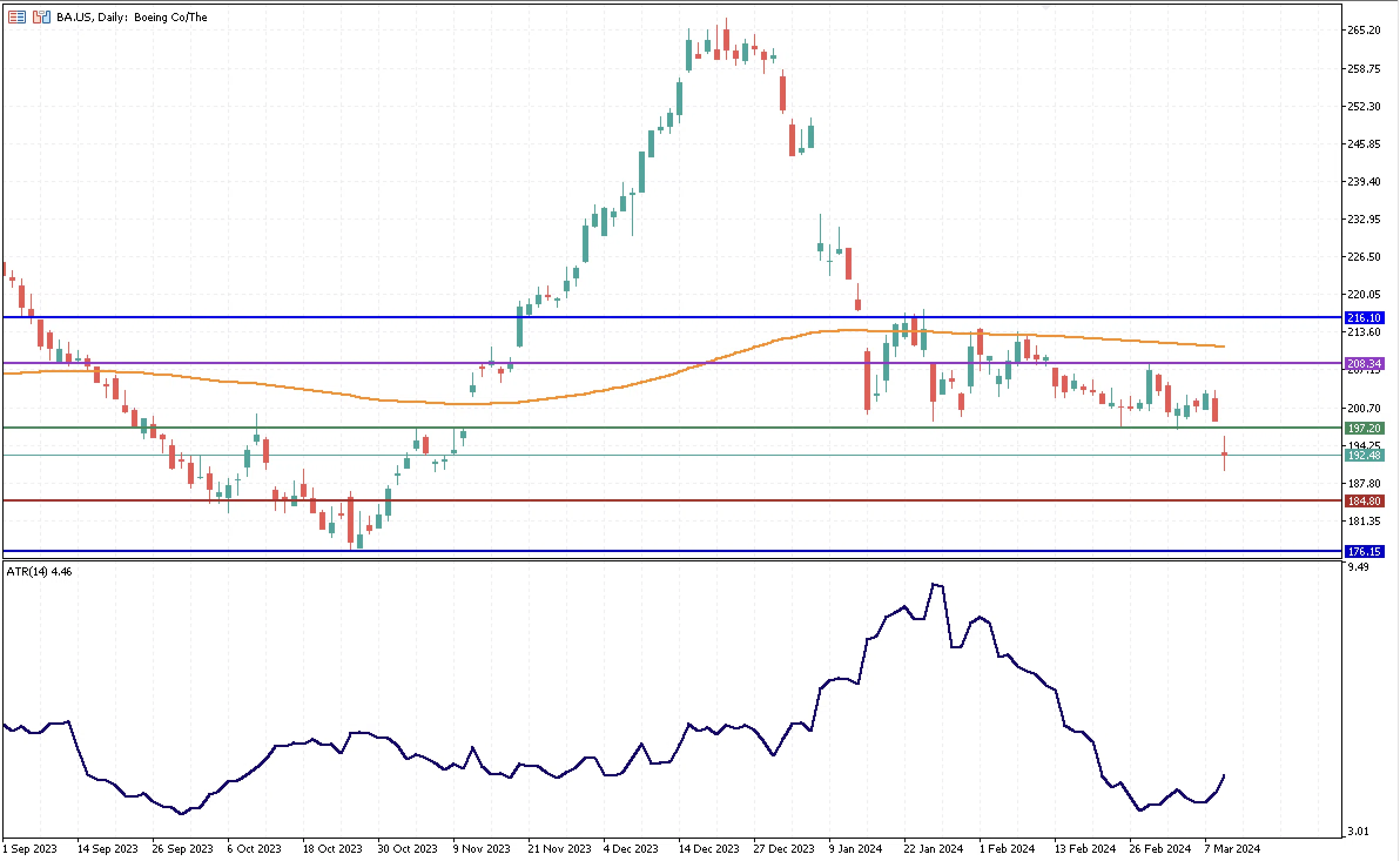 The stock has been in a consolidation phase since mid-January, between its monthly resistance of $216.0 and weekly support of $197.2, which prevented the price from reaching lower lows for four months. However, with the recent news, the stock has reached a new record low for 2024 at $189.77, and volatility seems to have started increasing, as shown by the ATR indicator, which is now edging higher and is located at 4.5, compared to 3.7 two weeks ago.