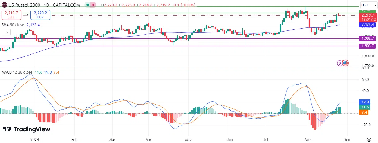 Technically, the Russell 2000 appears to be maintaining bullish momentum. The index has risen about 13% since the low of 5 August 2024, when it recorded 1,982 points, through to yesterday’s close. The primary challenge now is to reach and surpass the high of 2,307 points recorded on 31 July 2024.