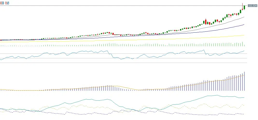 - يسجّل مؤشر الحركة الاتجاهية الإيجابية نحو 44 نقطة، مقابل نحو 5 نقاط لمؤشر الحركة الاتجاهية السلبية، ما يعكس فجوة واسعة بين المؤشرين ودلالة على ضغوط شرائية قوية. إضافة إلى ذلك، يسجّل مؤشر قوة الاتجاه نحو 70 نقطة، ما يؤكد أن زخم الاتجاه الصاعد لا يزال قويًا.