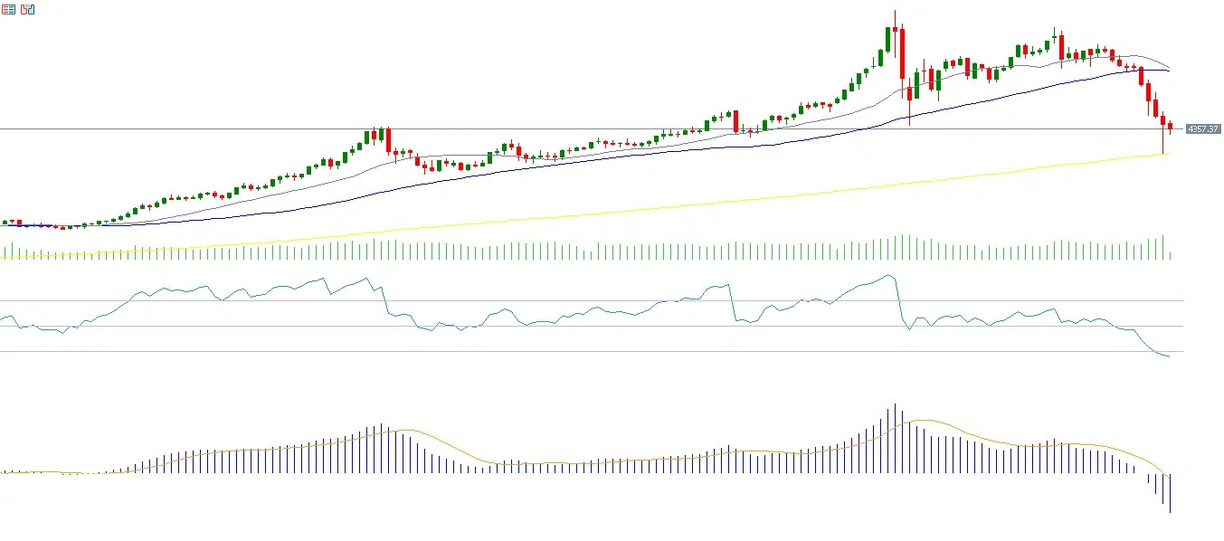 ومن الناحية الفنية للذهب، شهدنا تقاربًا بين المتوسط المتحرك لـ20 يومًا الذي يقف عند 4,990 دولار والمتوسط المتحرك لـ50 يومًا الذي يقف عند 4,969 دولار، مع ظهور تقاطع هبوطي بينهما، ما قد يشير إلى تحول الاتجاه إلى هبوطي. كما يُعد المتوسط المتحرك لـ200 يوم عند مستوى 4,096 دولار دعمًا استراتيجيًا، حيث اقتربت منه الأسعار دون أن تتمكن من كسره، ما يدل على قوة هذا المستوى. كذلك يسجل مؤشر القوة النسبية مستوى 27 نقطة، ما يعكس زخمًا سلبيًا، إلى جانب ظهور تقاطع هبوطي بين خط الماكد وخط الإشارة، وهو ما يعزز احتمالات استمرار هذا الزخم السلبي.