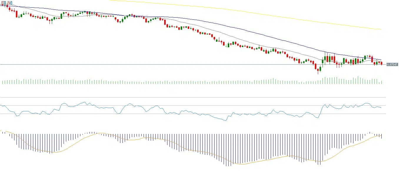 ومن الناحية الفنية، تشير المؤشرات إلى نوع من السلبية فيما يتعلق بمسار زوج الدولار الأميركي مقابل اليوان الصيني خلال الفترة المقبلة، وذلك لعدة أسباب. أولًا، لا يزال هناك انتظام سلبي في المتوسطات المتحركة لـ20 و50 و200 يوم مع اتجاهها الهبوطي، حيث يتجاوز متوسط 200 يوم متوسط 50 يومًا، ويتجاوز متوسط 50 يومًا متوسط 20 يومًا، ما يشير إلى استمرار الزخم السلبي. ثانيًا، يسجل مؤشر القوة النسبية حاليًا نحو 44 نقطة، ما يعكس زخمًا سلبيًا للزوج. ثالثًا، يُظهر مؤشر MACD تقاطعًا هبوطيًا بين خط الماكد وخط الإشارة، مما يدعم احتمالات استمرار الزخم السلبي خلال الفترة المقبلة.