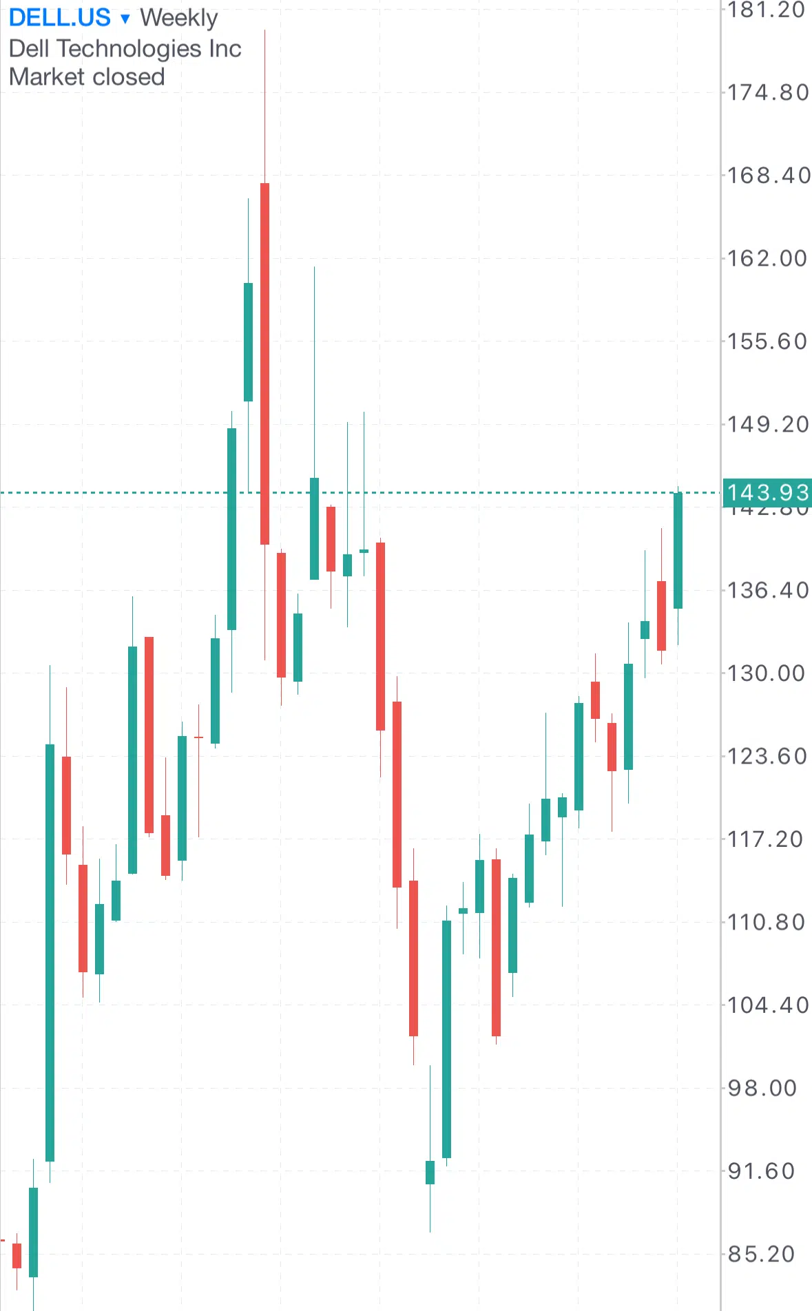 ارتفع سهم ديل تكنولوجيز بنحو 91% منذ بداية العام. من المتوقع أن تعلن ديل تكنولوجيز عن نتائجها المالية يوم الثلاثاء 26 نوفمبر. يُتوقع أن تعلن عن أرباح قدرها 2.07 دولار للسهم، أقل من القراءة السابقة التي بلغت 1.88 دولار. ومن المتوقع أن تصل الإيرادات إلى 24.69 مليار دولار، مقارنة بـ 22.30 مليار دولار سابقًا.