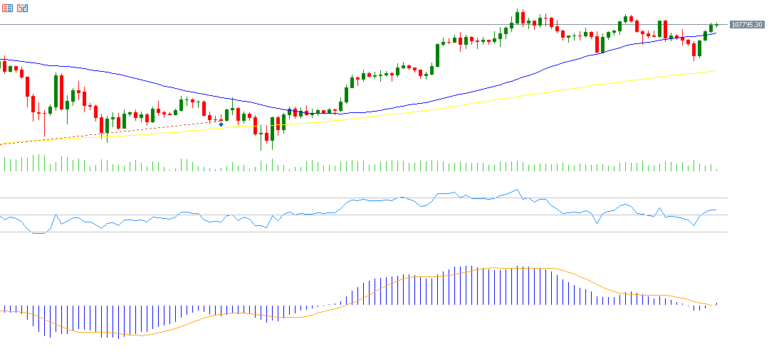 وشهدنا أيضًا بالأمس تقاطعًا صعوديًا على مؤشر MACD، حيث تجاوز الخط الأزرق (MACD) خط الإشارة البرتقالي (Signal Line)، وهو ما يعزز التوجه الإيجابي.