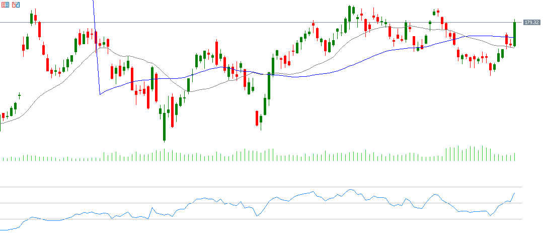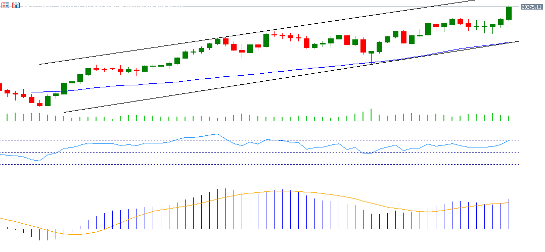 اللافت في الأمر هو أنه على الرغم من الانكماش الاقتصادي الألماني والعوامل السلبية التي تحيط بالداخل الألماني، خاصة من الناحية السياسية، إلا أن الصورة تأتي معاكسة تمامًا بالنسبة للأسهم الألمانية. إذ يستمر مؤشر داكس الألماني في مساره الصاعد مسجلًا يوم الجمعة 6 ديسمبر مستوى 20,426 نقطة، وهو أعلى مستوى له على الإطلاق. وارتفع بحوالي 20% منذ قاع 5 أغسطس 2024 حين سجل 17,024 نقطة وصولًا إلى القمة التي سجلها يوم الجمعة 6 ديسمبر 20,426 نقطة. كما ارتفع بنحو 21% منذ مطلع العام حتى اليوم. أما بالنسبة لمؤشر القوة النسبية، فهو يسجل حاليًا حوالي 73 نقطة، في منطقة التشبع الشرائي، ما يشير إلى الزخم الإيجابي للداكس.