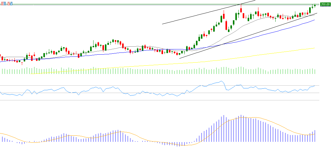 سجل سعر سهم ميتا 652 دولارًا يوم الجمعة 24 يناير 2024، وهو مستوى قياسي جديد. ويبدو أن الزخم الإيجابي مستمر، خاصةً مع تسجيل مؤشر القوة النسبية (RSI) 65 نقطة. كما يظهر مؤشر MACD تقاطعًا صعوديًا بين خط MACD (باللون الأزرق) وخط الإشارة (SIGNAL LINE باللون البرتقالي)، مما يدعم التوقعات الإيجابية لسهم ميتا. - مايكروسوفت: من المتوقع أن تسجل ربحًا قدره 3.13 دولار للسهم الواحد، مقارنة بـ 2.93 دولار في القراءة السابقة. أما الإيرادات، فتُقدر بـ 68.92 مليار دولار، مقابل 62.00 مليار دولار سابقًا.