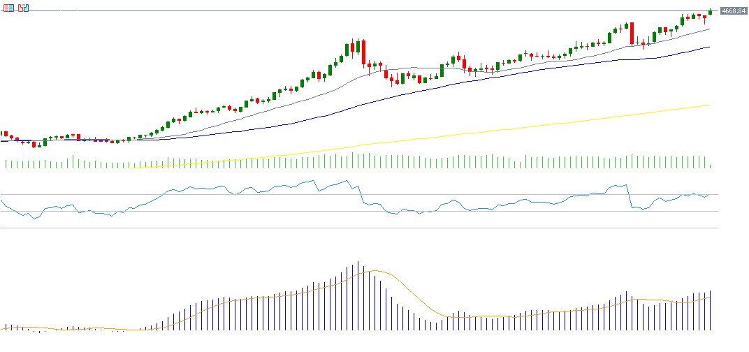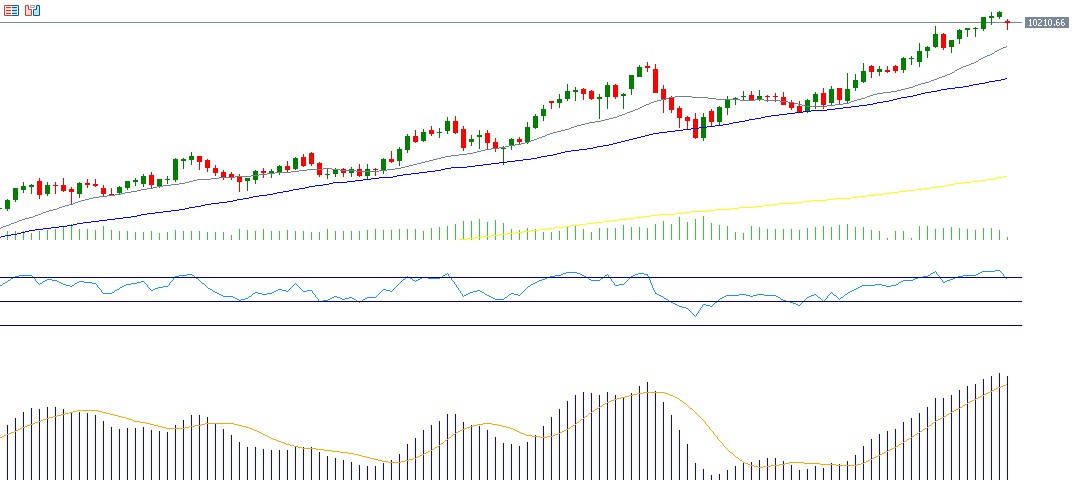 يواصل مؤشر فوتسي 100 البريطاني صعوده للجلسة السابعة على التوالي، حيث سجّل مستوى 10,256 نقطة يوم الجمعة، وهو أعلى مستوى له على الإطلاق. وارتفع المؤشر بنحو 3% منذ بداية العام وحتى اليوم، متفوّقًا على مؤشرات الأسهم الأميركية مثل S&P 500 وNasdaq 100. ويعود هذا الأداء القوي إلى عدة عوامل، أبرزها تفوّق بعض البيانات الاقتصادية البريطانية على التوقعات، حيث ارتفع الناتج المحلي الإجمالي على أساس شهري مسجّلًا نموًا بنسبة 0.3%، وهي قراءة أعلى من التوقعات البالغة 0.1%، وأفضل من القراءة السابقة التي سجّلت انكماشًا بنسبة -0.1%. كما ارتفع مؤشر الإنتاج الصناعي على أساس شهري مسجّلًا نموًا بنسبة 1.1%، وهو أيضًا أعلى من التوقعات البالغة 0.2%. إضافة إلى ذلك، يشهد القطاع المصرفي البريطاني زخمًا إيجابيًا، وفي مقدمته مصرف HSBC الذي سجّل سهمه مستوى قياسيًا جديدًا الأسبوع الماضي، إلى جانب توقعات باستمرار السياسة النقدية التيسيرية أو قيام بنك إنجلترا بخفض أسعار الفائدة مرتين خلال العام الجاري، ما يدعم أداء المؤشر. ويسجّل مؤشر القوة النسبية (RSI) حاليًا 77 نقطة، أي ضمن منطقة التشبع الشرائي، ما يعكس زخمًا صعوديًا قويًا، كما يظهر مؤشر MACD تقاطعًا صعوديًا يعزّز النظرة الإيجابية للمؤشر.