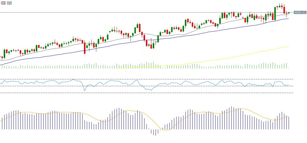 تراجع مؤشر داو جونز بنسبة 1.34% خلال الأسبوع الماضي، مُغلقًا عند مستوى 49,438 نقطة. ورغم ذلك، لا يزال المؤشر مرتفعًا بنحو 3% منذ بداية العام وحتى اليوم، ما يشير إلى تفوّق أسهم القيمة على أسهم النمو في هذه المرحلة. في المقابل، تراجع مؤشر S&P 500 بنحو 0.14%، فيما انخفض مؤشر ناسداك 100 بنحو 2.05%.