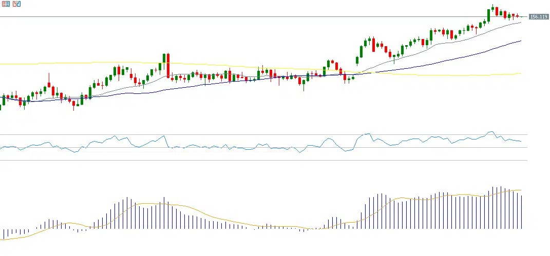 ارتفع سعر زوج الدولار الأميركي مقابل الين الياباني للشهر الثالث على التوالي مغلقًا عند مستوى 156.13 يوم الجمعة. وتشير التوقعات إلى استمرار الزخم الإيجابي لزوج الدولار مقابل الين على المدى القريب، وذلك لعدة أسباب أبرزها: التوترات الجيوسياسية بين اليابان والصين، وضعف الاقتصاد في اليابان، والسياسة المالية التوسعية للحكومة اليابانية، حيث أطلقت رئيسة الوزراء اليابانية ساناي تاكايتشي أكبر حزمة تحفيز منذ جائحة كورونا بقيمة 136 مليار دولار. ويسجل مؤشر القوة النسبية (RSI) حاليًا 60 نقطة، ما يشير إلى الزخم الصعودي للزوج.