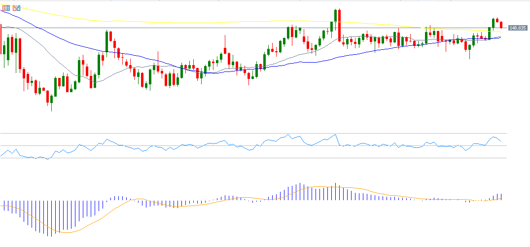 ارتفع سعر زوج الدولار الأميركي مقابل الين الياباني يوم الجمعة، مسجلاً مستوى 149.96، وهو الأعلى منذ 1 أغسطس 2025. وقد ارتفع الزوج بنسبة 3٪ منذ القاع الذي سجّل في 17 سبتمبر 2025 عند 145.48، وصولًا إلى القمة المحققة يوم الجمعة عند 149.96. ومع ذلك، لا يزال الزوج متراجعًا بنحو 5٪ منذ بداية العام حتى تاريخه. العوامل التي تضغط على الين الياباني تشمل الضبابية السياسية في اليابان والسياسة النقدية الأميركية. ويسجّل مؤشر القوة النسبية (RSI) حاليًا 62 نقطة، مما يعكس وجود زخم صعودي للزوج. كما يُظهر مؤشر MACD (الخط الأزرق) تقاطعًا إيجابيًا مع خط الإشارة (الخط البرتقالي)، مما يعزز التوقعات باستمرار الزخم الإيجابي للزوج.