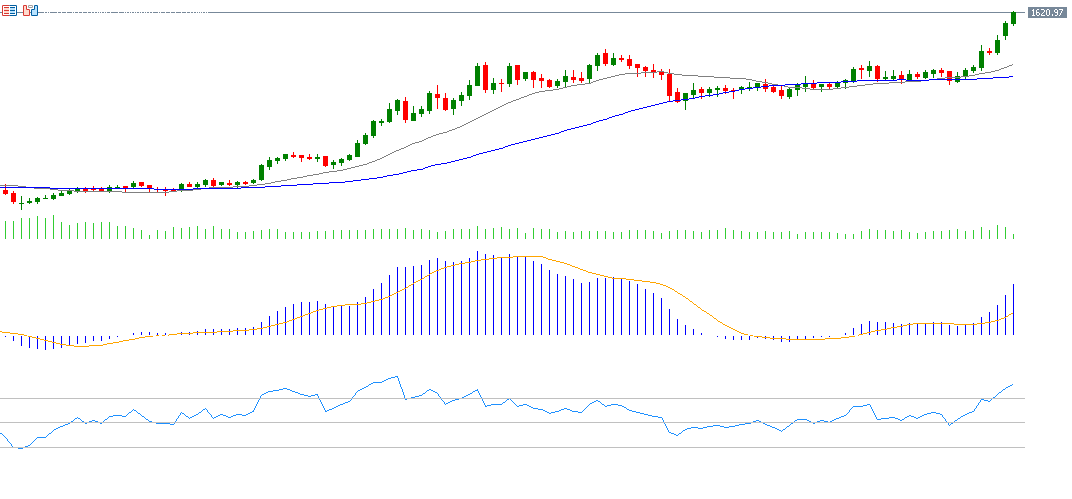 يواصل سعر البلاتين اتجاهه الصعودي، حيث سجّل 1,587 دولارًا يوم الجمعة، وهو أعلى مستوى له منذ عام 2008. كما ارتفع البلاتين بنحو 74٪ منذ بداية العام وحتى اليوم، متفوقًا على معظم الأصول الأخرى مثل البيتكوين، ومؤشرات الأسهم العالمية، والذهب الذي ارتفع بنسبة 43٪، وكذلك الفضة التي ارتفعت بنحو 59٪. وتشير التوقعات إلى استمرار الاتجاه الصعودي للبلاتين في الفترة المقبلة. يستفيد سعر البلاتين حاليًا من عدة عوامل، أبرزها العجز المستمر في المعروض والطلب الصناعي والاستثماري القوي التي تستخدم البلاتين بشكل أساسي، وبيئة السياسة النقدية التيسيرية من قبل الفيدرالي الأميركي، وتدفقات المستثمرين نحو صناديق المؤشرات المتداولة الخاصة بالبلاتين. أما مؤشر القوة النسبية (RSI) فيسجّل حاليًا 78 نقطة، ما يدل على دخوله منطقة التشبّع الشرائي، ويشير إلى زخم قوي في السوق. كما يوجد تقاطع صعودي بين خط MACD (باللون الأزرق) وخط الإشارة (الخط البرتقالي)، مما يعزز استمرار الزخم الإيجابي لأسعار البلاتين.