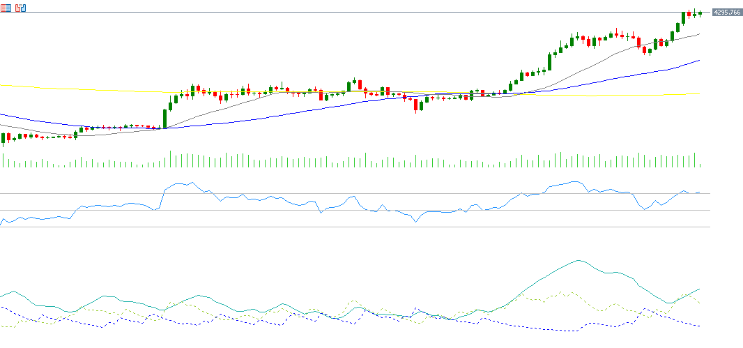 - انتظام المتوسطات المتحركة لـ20 و50 و200 يوم واتجاهها الصعودي، حيث يتجاوز متوسط الـ20 يومًا متوسط الـ50 يومًا، ويتجاوز متوسط الـ50 يومًا متوسط الـ200 يوم.