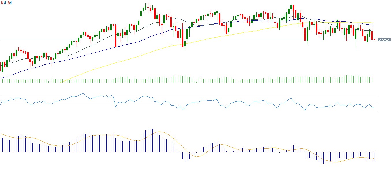 • أغلق عند 24,425 نقطة يوم أمس، متراجعًا بنحو 3% منذ بداية العام حتى اليوم