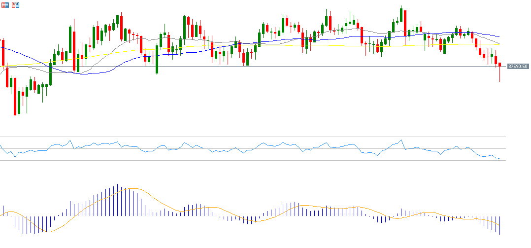 تراجع مؤشر نيكاي 225 إلى مستوى 36,840 نقطة يوم الجمعة 28 فبراير 2025، وهو أدنى مستوى له منذ 13 سبتمبر 2024. يعود هذا الانخفاض إلى الرسوم الجمركية التي ستفرضها إدارة ترامب على عدة دول، بالإضافة إلى توقعات البنك المركزي الياباني باستمرار رفع أسعار الفائدة في المرحلة القادمة. يسجل مؤشر القوة النسبية (RSI) حاليًا 30 نقطة، مما يشير إلى الزخم الهبوطي لمؤشر نيكاي 225. أما مؤشر MACD، فيظهر تقاطعًا هبوطيًا بين مؤشر MACD باللون الأزرق وخط الإشارة (Signal Line) باللون البرتقالي، مما يعطي زخمًا سلبيًا لمؤشر نيكاي 225.