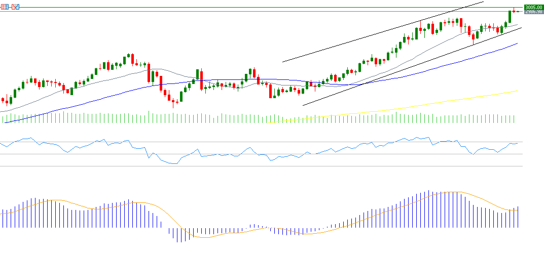 وصل سعر الذهب إلى مستوى 3,005 دولار يوم الجمعة 14 مارس 2025، وهو أعلى مستوى له على الإطلاق، بفضل الحرب التجارية بين إدارة ترامب وبعض الدول مثل كندا والمكسيك والصين والاتحاد الأوروبي بالإضافة إلى توقعات بمزيد من تخفيض أسعار الفائدة الأميركية، إذ يتوقع المحللون ثلاثة تخفيضات هذا العام، واستمرار التوترات الجيوسياسية في الشرق الأوسط، وشراء البنوك المركزية العالمية للذهب. أما مؤشر القوة النسبية RSI فيسجل حاليًا 67 نقطة، ما يشير إلى الزخم الإيجابي للذهب. أما مؤشر MACD، فيظهر تقاطع صعودي بين مؤشر MACD باللون الأزرق مع الـ SIGNAL LINE باللون البرتقالي، مما يعطي زخمًا صعوديًا للذهب.