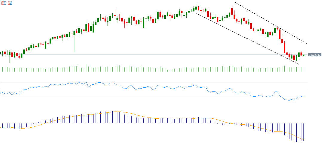 سجل سعر الدولار الأمريكي مقابل الكرونا السويدية 9.9630 في 11 مارس 2025، وهو أدنى مستوى منذ 29 ديسمبر 2023. وتراجع سعر الزوج بنحو 12% منذ القمة التي سجلها في 13 يناير 2025 عند 11.3101، إلى القاع الذي سجله في 11 مارس 2025. أما مؤشر القوة النسبية RSI فيسجل حاليًا 32 نقطة، ما يشير إلى الزخم الهبوطي لزوج الدولار الأميركي مقابل الكرونا السويدية. أما مؤشر MACD، فيظهر تقاطع هبوطي بين مؤشر MACD باللون الأزرق مع الـ SIGNAL LINE باللون البرتقالي، مما يعطي زخمًا سلبيًا لزوج الدولار الأميركي مقابل الكرونا السويدية.