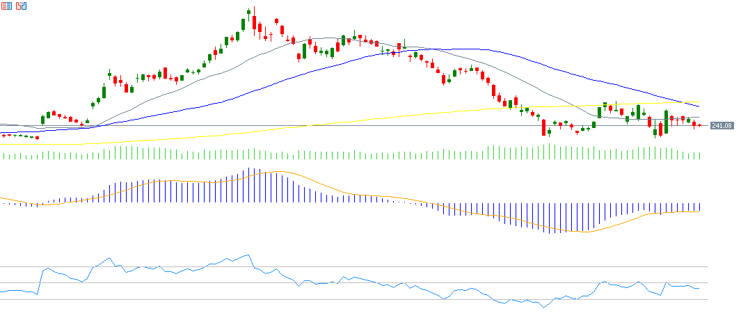 تراجع سهم تسلا بنحو 40% منذ بداية العام وحتى الآن. وتترقب الأسواق صدور النتائج المالية للشركة عن الربع الأول من العام، حيث تتوقع تسجيل ربح قدره 0.71 دولار للسهم الواحد، مقارنة بـ 0.45 دولار في القراءة السابقة. أما الإيرادات، فتتوقع الأسواق أن تبلغ 25.81 مليار دولار، بعد أن كانت 21.3 مليار دولار في القراءة السابقة. ويسجل مؤشر القوة النسبية (RSI) حاليًا نحو 44 نقطة، ما يشير إلى استمرار الزخم السلبي على السهم.