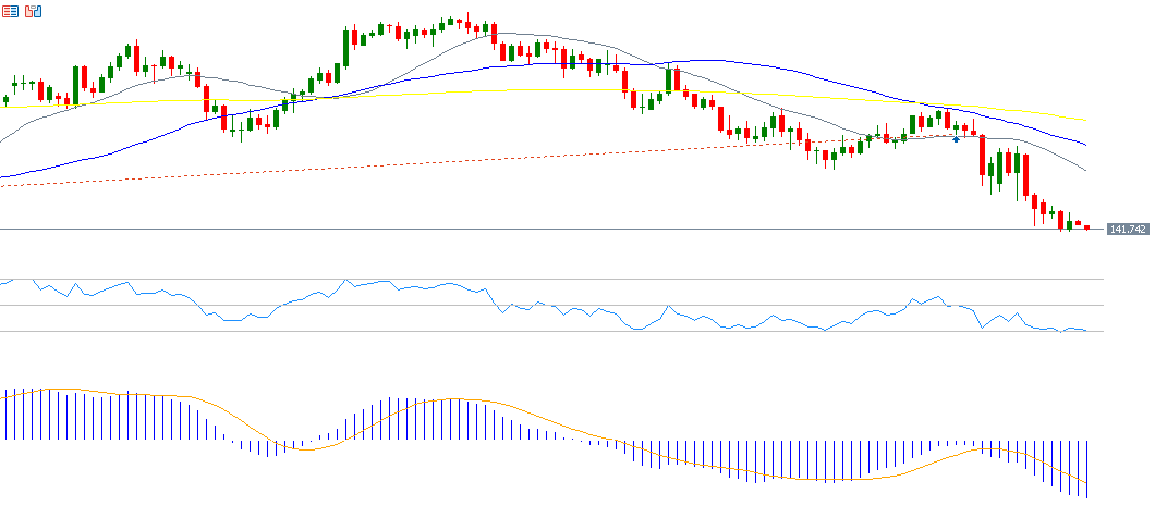سجل سعر الدولار الأميركي مقابل الين الياباني 141.61 يوم الخميس الموافق 17 أبريل 2025، وهو أدنى مستوى له منذ 18 سبتمبر 2024، ويتداول حاليًا قرب مستويات 142.00. وقد تراجع هذا الزوج بنحو 10% منذ مطلع العام وحتى اليوم. ويبدو أن الزخم السلبي يهيمن على المرحلة المقبلة، نتيجة لعدة عوامل، أبرزها اعتبار الين الياباني عملة ملاذ آمن في أوقات الاضطرابات، بالإضافة إلى احتمالات قيام البنك المركزي الياباني برفع أسعار الفائدة في الفترة القادمة. ويسجل مؤشر القوة النسبية (RSI) حاليًا نحو 31 نقطة، ما يشير إلى وجود زخم سلبي. كما يظهر مؤشر MACD تقاطعًا هبوطيًا بين الخط الأزرق (MACD) وخط الإشارة باللون البرتقالي (Signal Line)، مما يعزز الزخم السلبي لزوج الدولار مقابل الين.