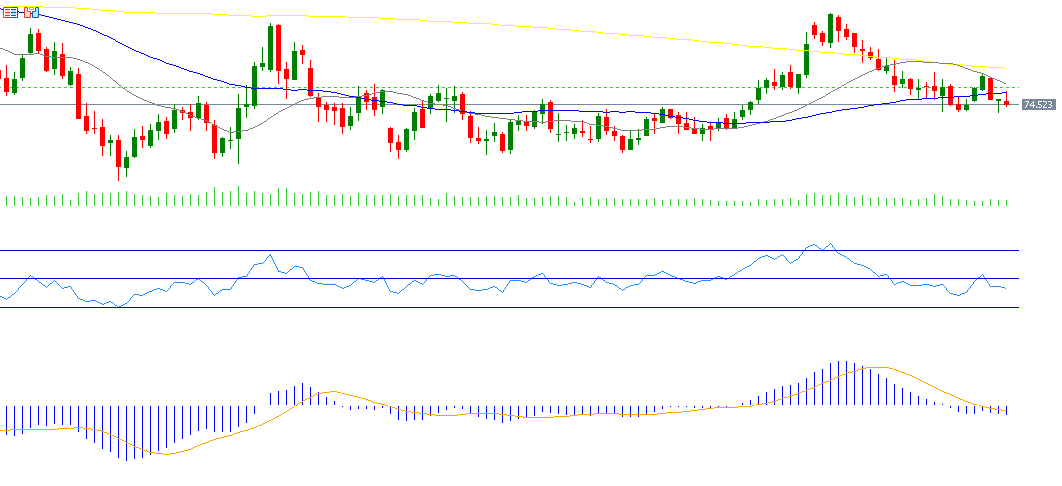 تراجعت أسعار النفط الخام، مسجلة 74.50 دولارًا يوم الجمعة 14 فبراير، بعد أن وصلت إلى مستوى 77.25 دولارًا في 11 فبراير. وتحوم أسعار النفط حاليًا دون مستوى 75.00 دولارًا وسط الضبابية المسيطرة على السوق النفطي، الذي يخضع لعدة عوامل متباينة. أما بالنسبة للعوامل الإيجابية التي تؤثر على أسعار النفط، فأبرزها تمديد التخفيضات الطوعية لإنتاج النفط من قبل تحالف أوبك+ بمقدار 2.2 مليون برميل يوميًا حتى نهاية مارس من هذا العام، بالإضافة إلى الإجراءات التحفيزية الجديدة المنتظرة التي ستتخذها السلطات في الصين، أكبر دولة مستوردة للنفط، لإنعاش اقتصادها. إلا أن عدة عوامل تعيق هذا الارتفاع، أبرزها ارتفاع مخزونات النفط الأميركية والحديث عن وقف الحرب الروسية الأوكرانية، خاصةً مع وساطة الرئيس دونالد ترامب بين البلدين المتنازعين. أما بالنسبة لمؤشر القوة النسبية (RSI)، فهو يسجل حاليًا 43 نقطة، ما يشير إلى الزخم الهبوطي لأسعار النفط. بالإضافة إلى ذلك، يظهر مؤشر MACD أن الخط الأزرق أدنى من خط الإشارة (Signal Line) باللون البرتقالي، مما يعزز استمرار الزخم السلبي لأسعار النفط الخام.