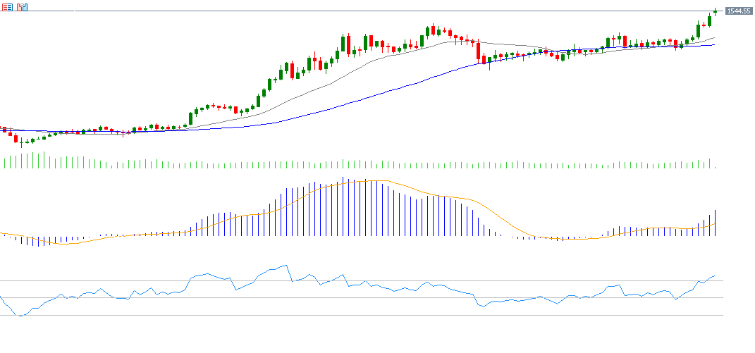 - انتظام المتوسطات المتحركة لـ20 و50 و200 يوم واتجاهها الصاعد، حيث يتجاوز متوسط الـ20 يومًا نظيره لـ50 يومًا، والذي بدوره يتجاوز متوسط الـ200 يوم، مما يعكس هيكلًا فنيًا صاعدًا.