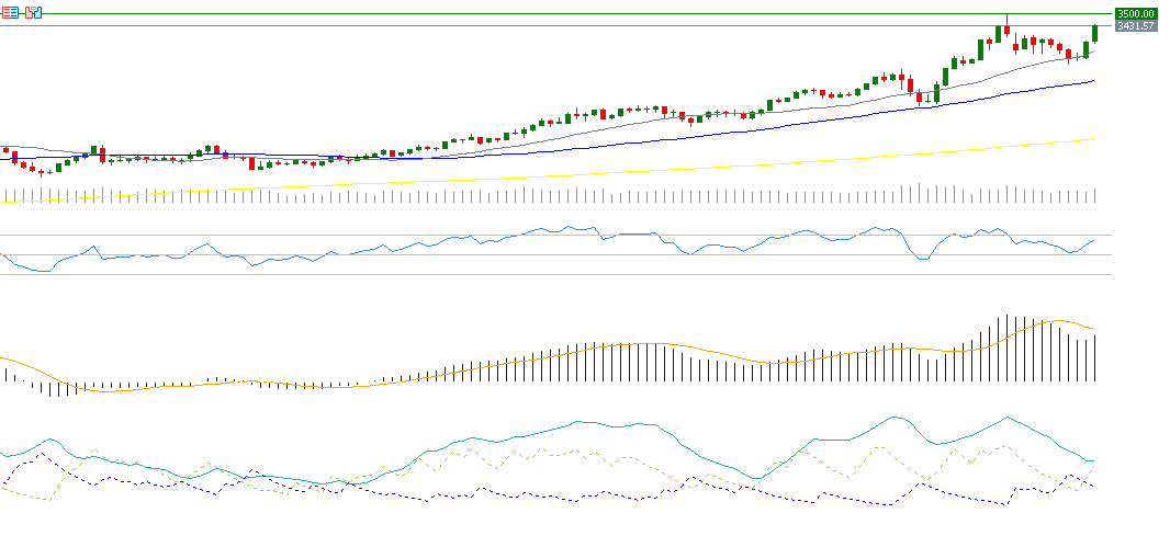 - المتوسطات المتحركة: تظهر انتظامًا صعوديًا، حيث يتجاوز متوسط 20 يومًا نظيره لـ50 يومًا، ويعلو متوسط 50 يومًا متوسط 200 يوم.