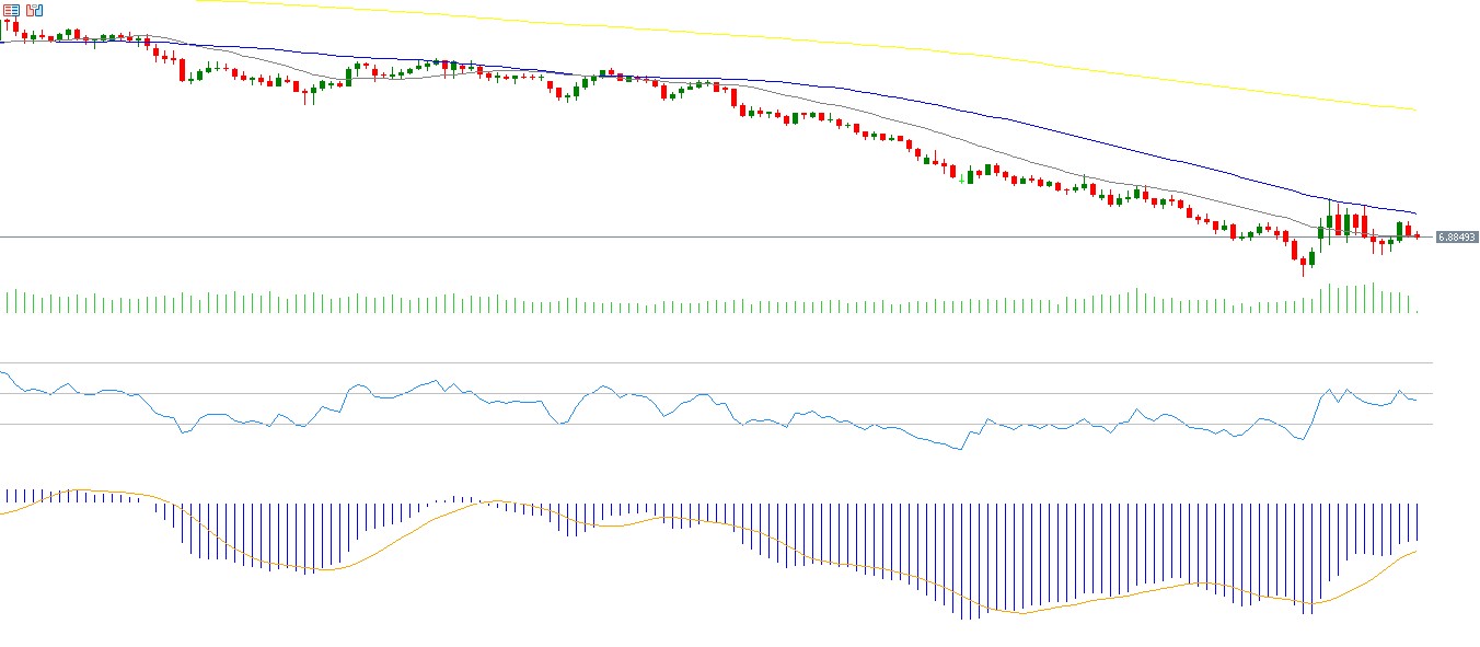 ومن الناحية الفنية، تشير المؤشرات إلى تباين فيما يتعلق بمسار زوج الدولار الأميركي مقابل اليوان الصيني خلال الفترة المقبلة، وذلك لعدة أسباب. أولًا، لا يزال هناك انتظام سلبي في المتوسطات المتحركة لـ20 و50 و200 يوم مع اتجاهها الهبوطي، حيث يتجاوز متوسط 200 يوم متوسط 50 يومًا، ويتجاوز متوسط 50 يومًا متوسط 20 يومًا، ما يشير إلى استمرار الزخم السلبي. ثانيًا، يسجل مؤشر القوة النسبية حاليًا نحو 46 نقطة، ما يعكس زخمًا سلبيًا للزوج. ثالثًا، في المقابل، يُظهر مؤشر MACD تقاطعًا صعوديًا بين خط الماكد وخط الإشارة، مما يدعم احتمالات الزخم الإيجابي خلال الفترة المقبلة.