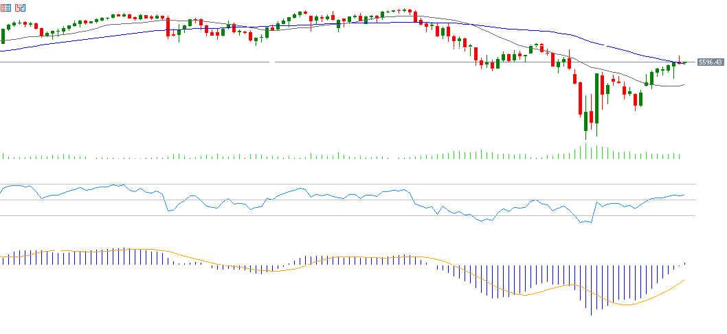 من الناحية الفنية، اخترق مؤشر S&P 500 صعوديًا المتوسط المتحرك لـ50 يومًا عند 5,592 نقطة. ويُعتبر التحدي الأكبر حاليًا هو استهداف المستوى القياسي المُسجّل هذا العام عند 5,676 نقطة.