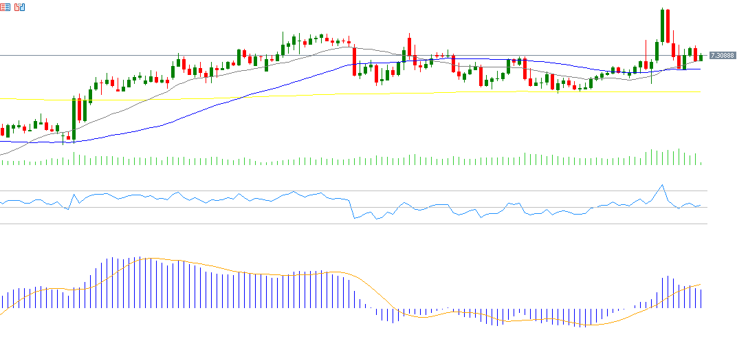 وتسود تحركات زوج الدولار الأميركي مقابل اليوان الصيني حالة من الضبابية، ولكن تشهد المؤشرات الفنية حاليًا ضغوطات على الزوج: