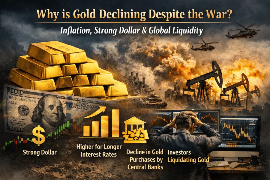 أولًا: قوة الدولار الأمريكي في ظل المخاوف التضخمية، حيث شهدنا ارتفاعًا في آخر قراءات مؤشرات التضخم مثل Core PCE وCore PPI عن شهر فبراير، أي قبل اندلاع الحرب، وهو ما يُعد أمرًا مقلقًا، خاصة أن هذه الحرب قد تغذي مستويات التضخم مع استمرار ارتفاع أسعار الطاقة. ويأتي ذلك بالتزامن مع اللهجة المتشددة لـ جيروم باول، الذي أشار إلى أنه لن يكون هناك خفض لأسعار الفائدة قبل تراجع معدلات التضخم، وأن الفائدة يجب أن تبقى مقيدة لضمان عودة التضخم إلى مستهدفاته، كما أشار إلى أن بعض أعضاء الاحتياطي الفيدرالي طرحوا فكرة رفع أسعار الفائدة. وبالتالي، فإن الإبقاء على الفائدة مرتفعة لفترة أطول، أو حتى رفعها، يضغط على الذهب كونه أصلًا لا يدر عائدًا.