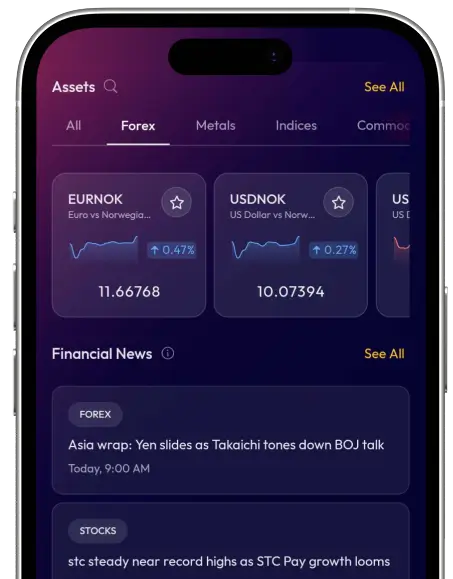 Akses CFD merentasi forex, saham, indeks, komoditi, mata wang kripto, dan ETF.