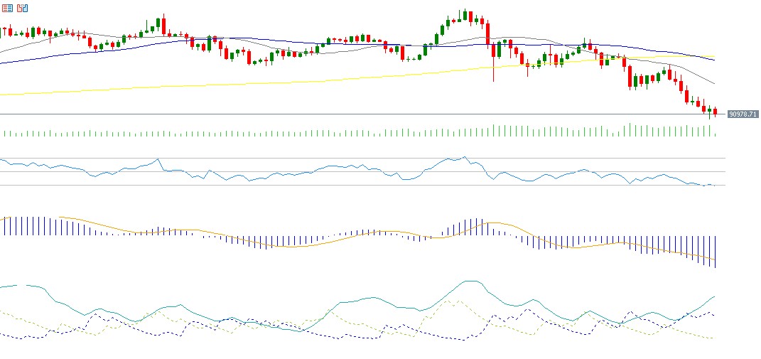 Bitcoin prices have fallen sharply by nearly 29%, dropping about $37,000 from the peak recorded on October 6, 2025, at around $126,200, down to yesterday’s low of approximately $89,200. This decline marks Bitcoin’s official entry into a bear market, wiping out all its gains for the year and turning its year-to-date performance negative by 3%. Bitcoin is currently trading slightly above the psychological level of $90,000, at around $91,000.