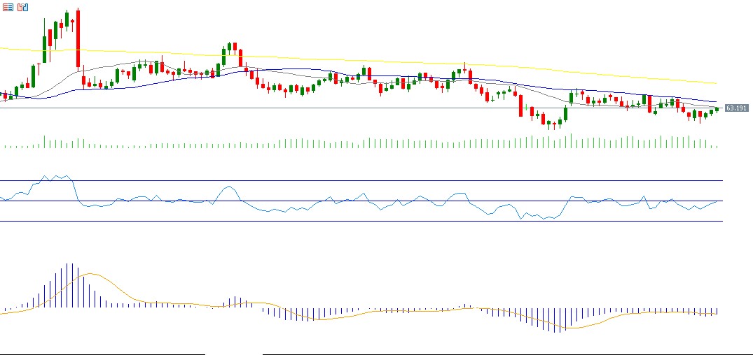 Crude oil prices fell for the fourth consecutive month, touching $60.96 last Tuesday— their lowest level since October 21, 2025—before closing at $62.31 on Friday. Prices have dropped around 17% year-to-date. Key downward pressures include potential progress toward ending the Russia–Ukraine war, abundant supply from non-OPEC+ producers, weak economic data from major oil-importing countries such as China (weighing on global demand), rising Iranian oil shipments stored at sea to their highest level since 2023, and a 2.774-million-barrel increase in U.S. crude inventories last week. The RSI currently stands at 44, signaling bearish momentum. The MACD also shows a bearish crossover, reinforcing the likelihood of continued selling pressure.