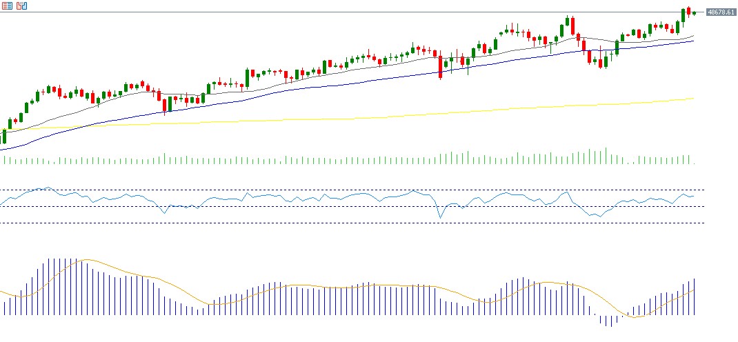 The Dow Jones Industrial Average recorded a new all-time high on Friday and rose by about 1.15% over the past week, outperforming the S&P 500 and the Nasdaq 100, though it lagged slightly behind the Russell 2000, which gained around 1.20% and hit a record high. The Dow is up roughly 14% year-to-date.
