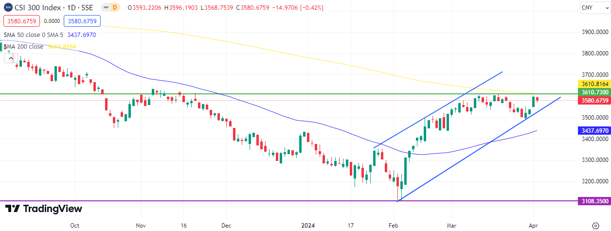 As for Chinese stocks, the CSI 300 index rose by about 16% from the bottom of February 2 this year, which recorded 3,108 points, to the peak that it recorded on March 19, 3,610 points, with expectations of its upward trend continuing. The index is currently hovering near the 3,600 points level.