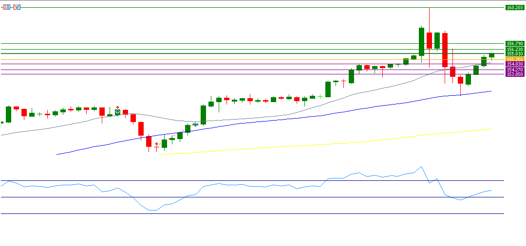 Should the yen break the 155.25 pivot point against the dollar, it may target support levels at 154.83, 154.27, and 153.85. Conversely, exceeding the pivot point could lead to targeting resistance levels of 155.81, 156.23, and 156.79.