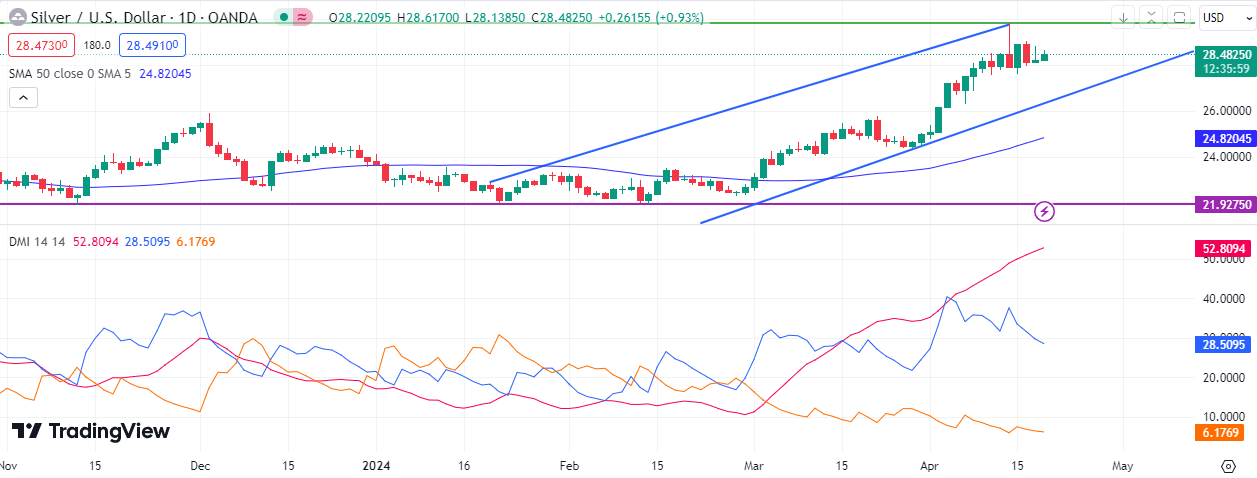 The price of silver surged by approximately 36% from its low on January 22, 2024, marked at $21.9275, to its peak on April 12, reaching $29.7980, with expectations of its upward trajectory persisting. Presently, the price of silver is fluctuating around the $28.50 mark. The primary hurdle remains in attaining and surpassing the $30 threshold.