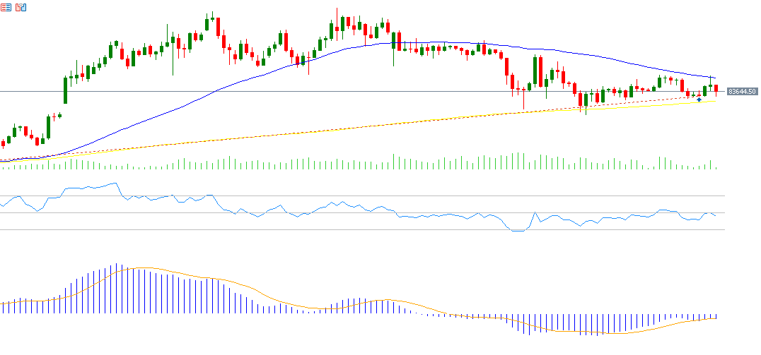 Bitcoin has successfully surpassed the 20-day moving average (gray) at 84,548 dollars. The next major challenge is to test the resistance level at the 200-day moving average (yellow), which stands at 86,413 dollars, followed by the 50-day moving average (blue) at 87,706 dollars.