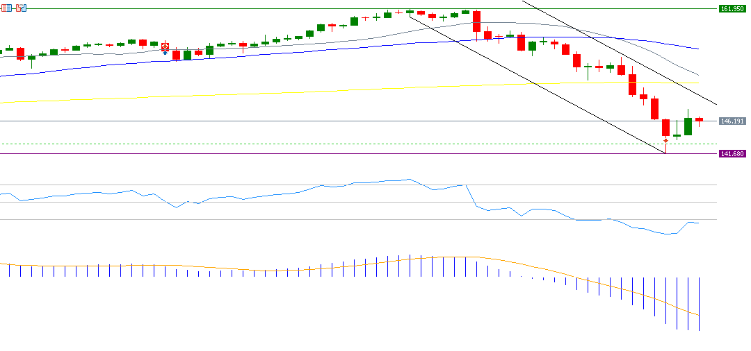 The USDJPY pair is hovering around the 146 level, with technical indicators suggesting a bearish outlook. For instance, the DMI+ is around 10 points, while the DMI- is at approximately 40 points, indicating strong selling pressure on the pair. Additionally, the ADX is around 49 points, signalling strong downside momentum. The RSI is around 26 points, indicating that the pair is in the oversold zone, reflecting the negative momentum of the USDJPY pair.