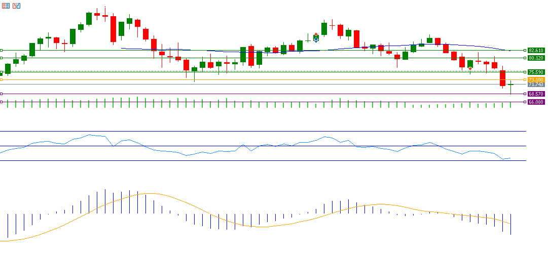 If the pivot point of 73.10 is broken, Brent crude oil may target support levels at 68.57, 66.08, and 61.55. If the pivot point is exceeded, resistance levels at 75.59, 80.12, and 82.61 could be targeted.