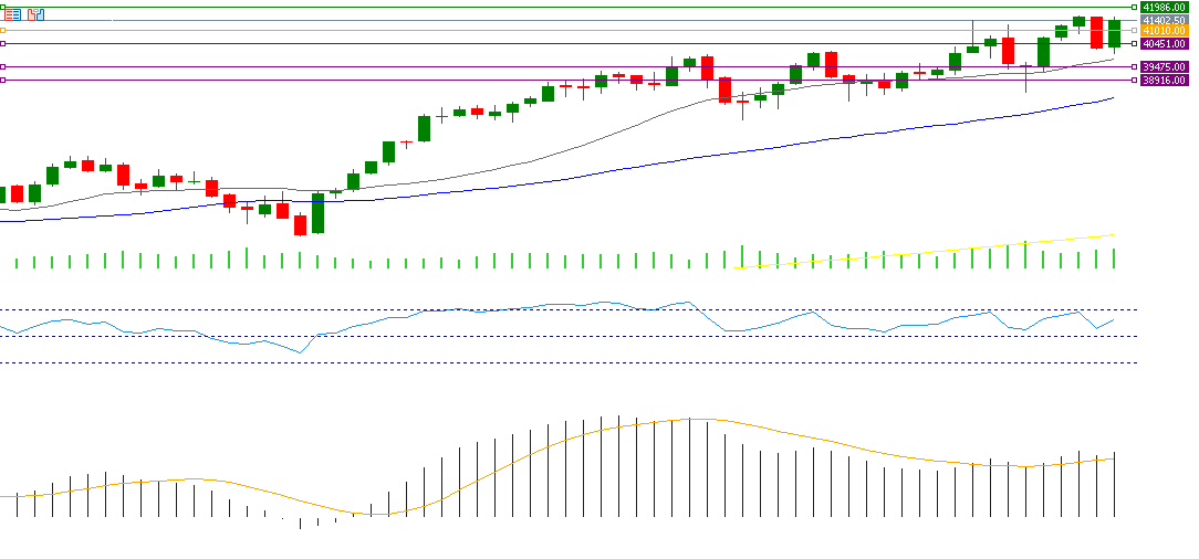 If the pivot point of 41010 is broken, the Dow Jones may target support levels at 40451, 39475, and 38916. If the pivot point is exceeded, resistance levels at 41986, 42545, and 43521 could be targeted.