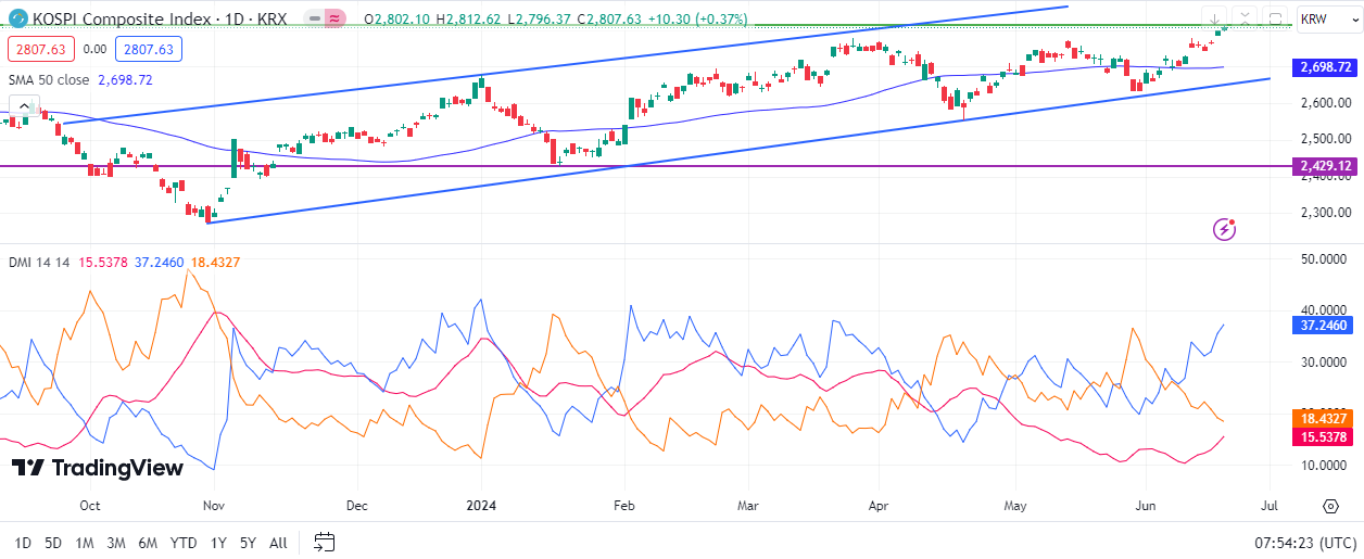 Additionally, the consumer price index (CPI) on an annual basis in South Korea declined, recording 2.7% in May. This is lower than expectations (2.8%) and the previous reading (2.9%), and it is closer to the rate targeted by the South Korean Central Bank, which stands at 2%. This encourages the central bank to consider reducing interest rates in the next stage.