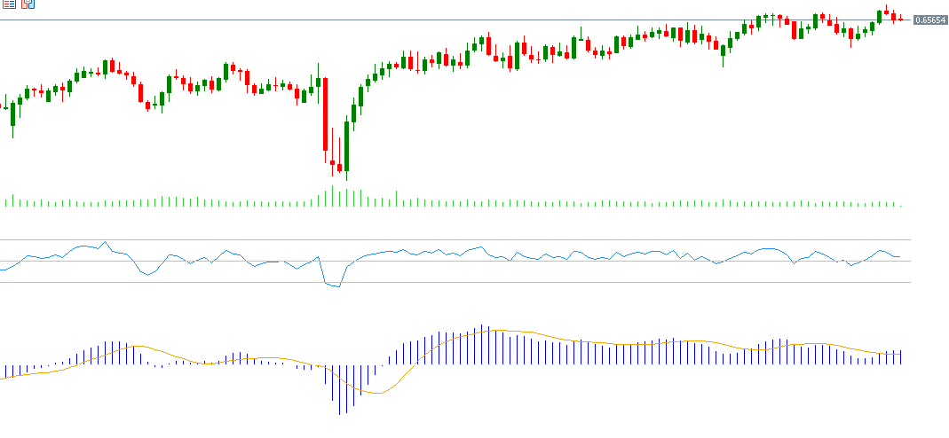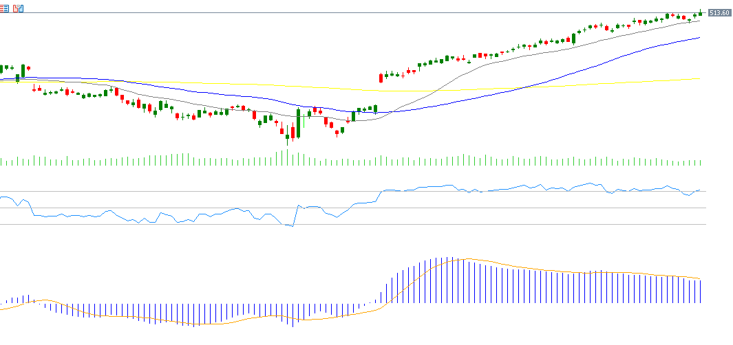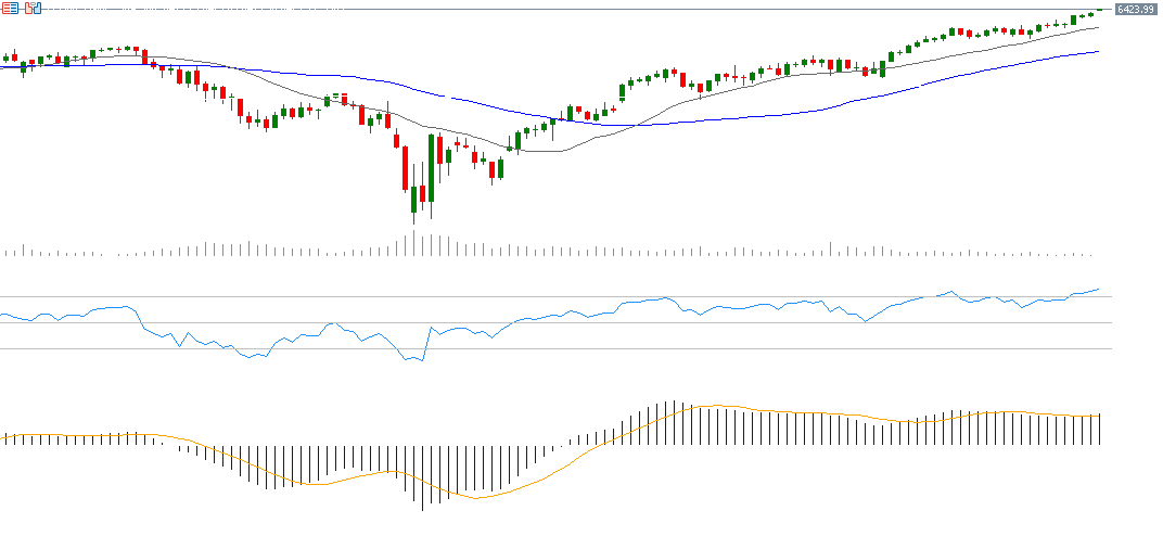 The S&P 500 hit a new all-time high of 6,396 on Friday, closing at 6,389. The index has surged 32% from its April 7 low of 4,835 and is up 9% year-to-date, confirming a bull market. The rally is supported by strong corporate earnings, easing trade tensions—especially after a trade deal between the US and Japan—and indications of a potential agreement with the EU. The RSI is at 76, signaling overbought conditions and strong upward momentum. The MACD shows a bullish crossover, indicating continued strength.