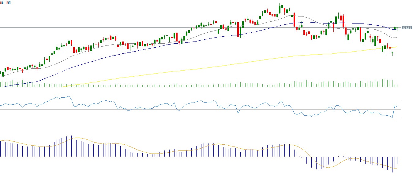 Shares of JP Morgan Chase have declined by about 4% since the beginning of the year. Markets are awaiting the bank’s first-quarter earnings results, scheduled for Tuesday, April 14, 2026. Analysts expect earnings per share to reach $5.38, compared with $5.07 in the previous reading. Revenue is expected to reach $48.62 billion after recording $46.00 billion previously. The Relative Strength Index (RSI) currently stands at 65 points, indicating positive momentum for JP Morgan Chase shares. Meanwhile, the MACD indicator shows a bullish crossover between the MACD line (blue) and the signal line (orange), suggesting positive momentum for the stock.