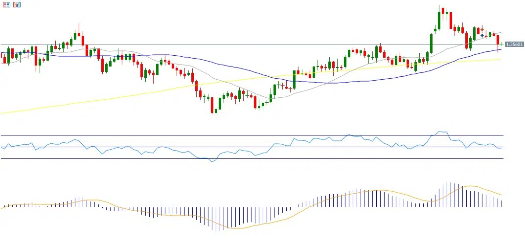 From a technical perspective, a break below the pivot level at 1.3568 could open the door toward support levels at 1.3497, 1.3424, and 1.3353. On the upside, a move above the pivot level could see the pair target resistance levels at 1.3641, 1.3712, and 1.3785.