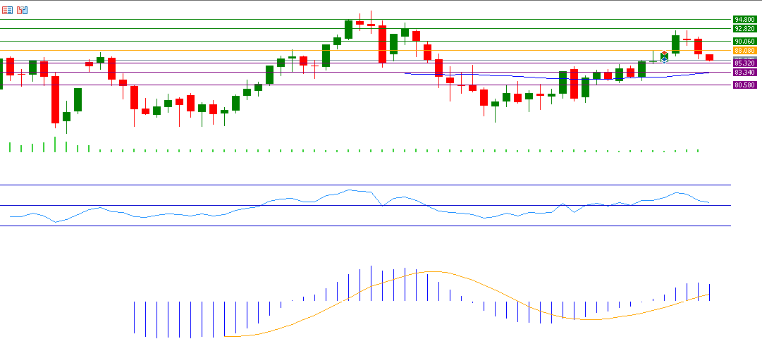 If the pivot point of 88.08 for crude oil is broken, there is a possibility that it will target the support levels of 85.32, 83.34 and 80.58. If it exceeds the pivot point, it is likely to target the resistance levels 90.06, 92.82, and 94.80.