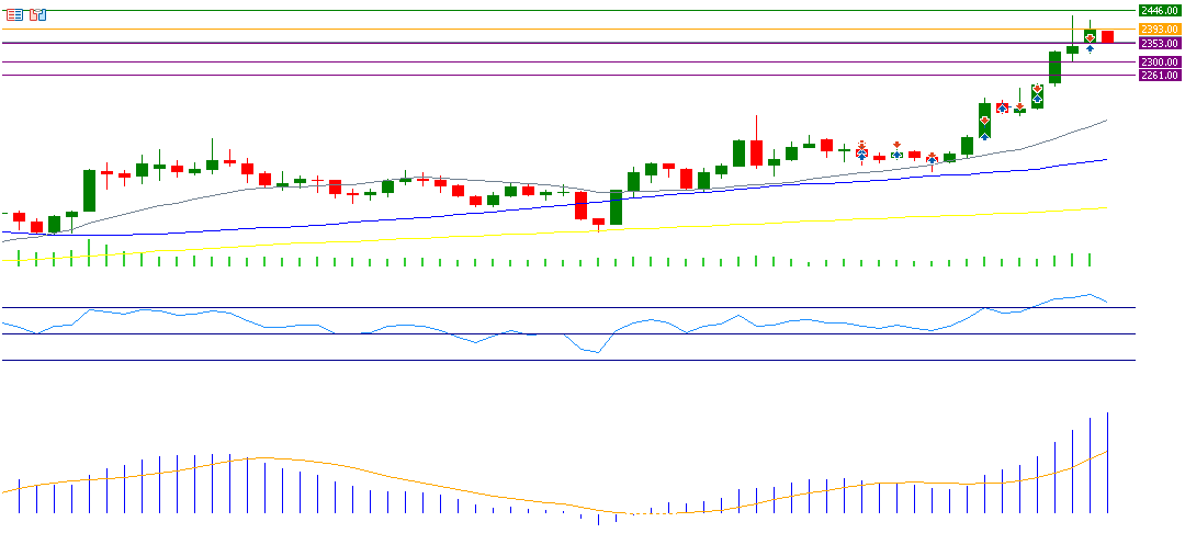 If the pivot point of 2393 is broken for gold, there is a possibility that it will target the support levels 2353, 2300, and 2261. But if it exceeds the pivot point, it is likely to target the resistance levels 2446, 2486, and 2539.