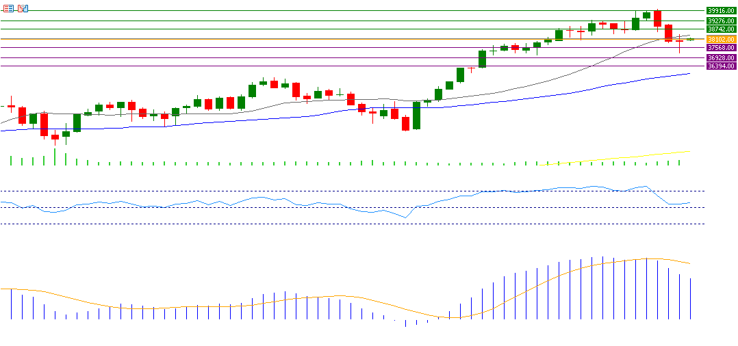 If the pivot point of 38,102 for the Dow is broken, there is a possibility that it will target the support levels 37,568, 36,928 and 36,394. If it exceeds the pivot point, it is likely to target the resistance levels 38,742, 39,726, and 39,916.