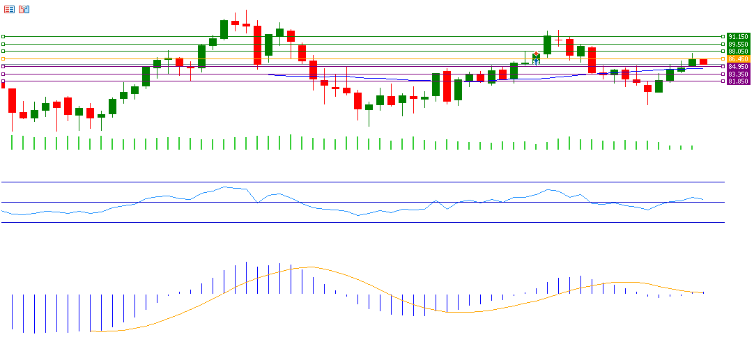 If the brent crude breaks the pivot point of 86.45, it may potentially target and test the support levels of 84.95, 83.35 and 81.85. if it surpasses the pivot point, it is likely to test resistance levels of 88.05, 89.55, and 91.15.